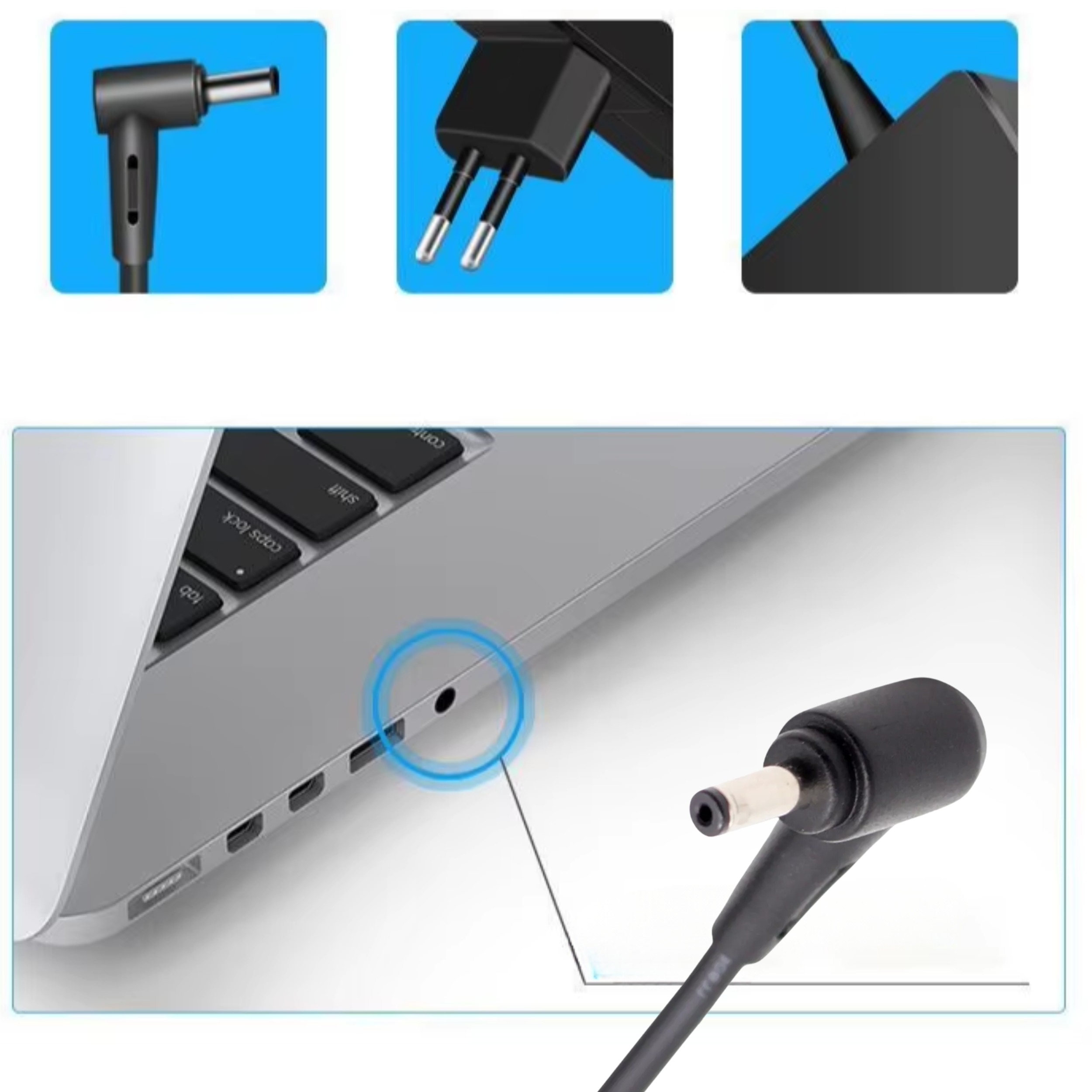 Natężenie (A) i Moc (W): Natężenie (3.42A) lub Moc (65W) może być równe lub wyższe niż w oryginalnym zasilaczu. Nie może być niższe.