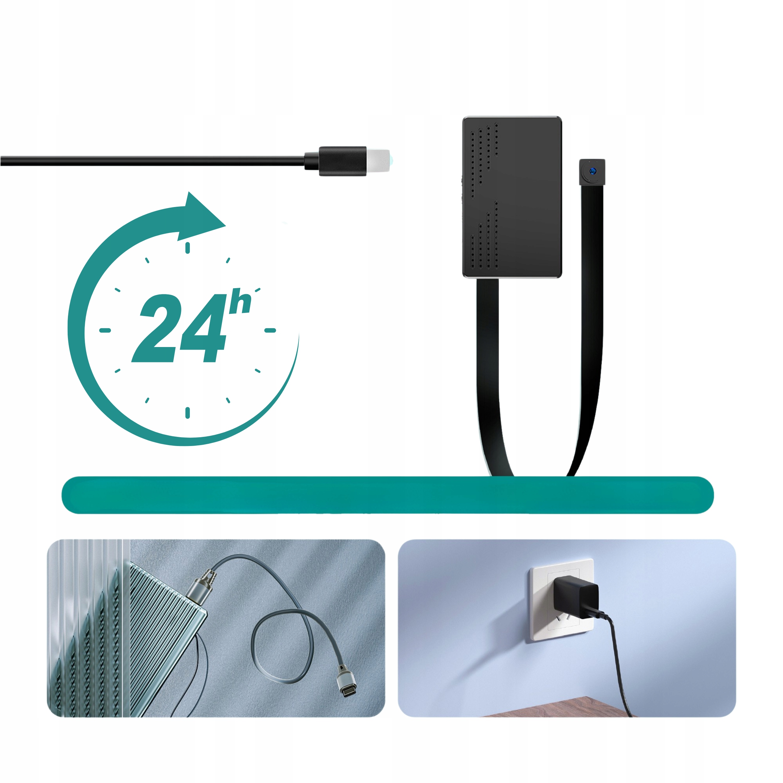 Kamerę można podłączyć do ładowarki sieciowej, do powerbanku, do ładowarki USB. Dzięki temu kamera będzie pracowała nieprzerwanie.