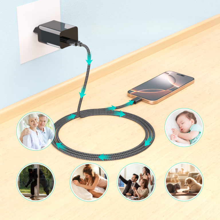 Kamera działa jak klasyczna ładowarka USB 5V/1A – umożliwia jednoczesne ładowanie urządzeń mobilnych podczas rejestrowania obrazu. Dyskrecja i funkcjonalność w jednym.