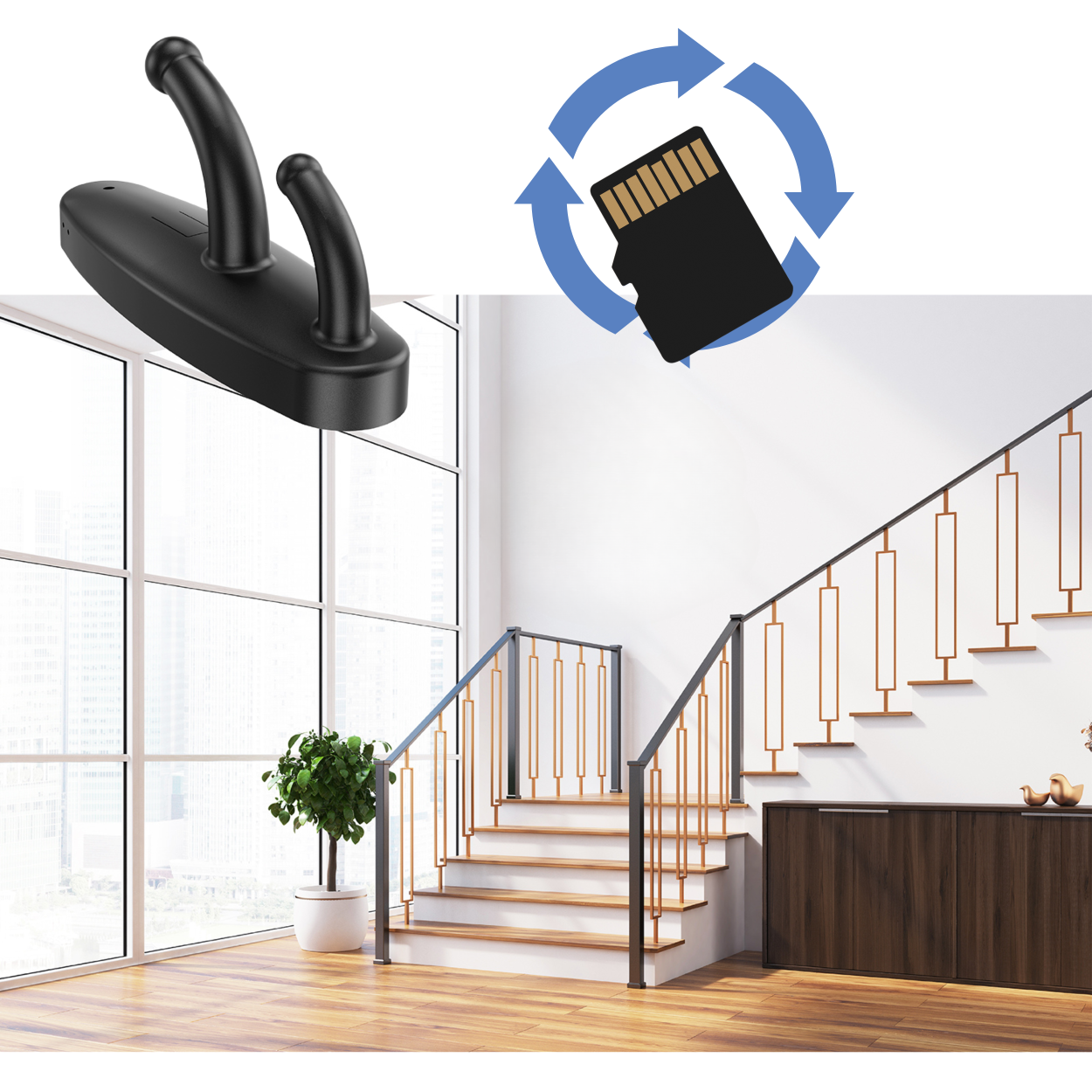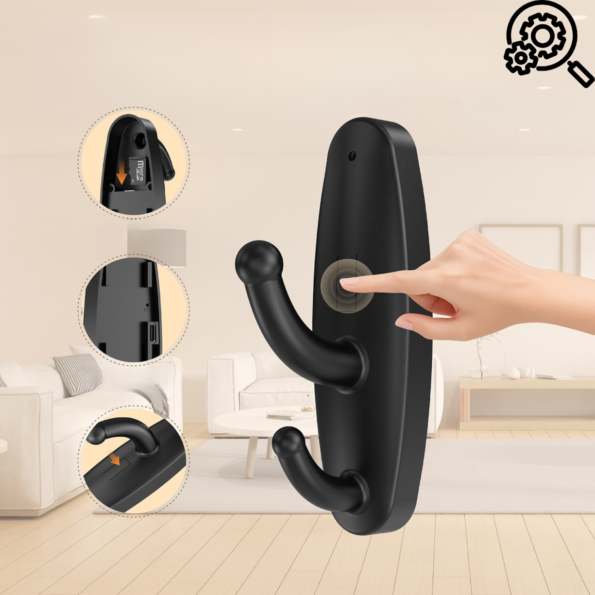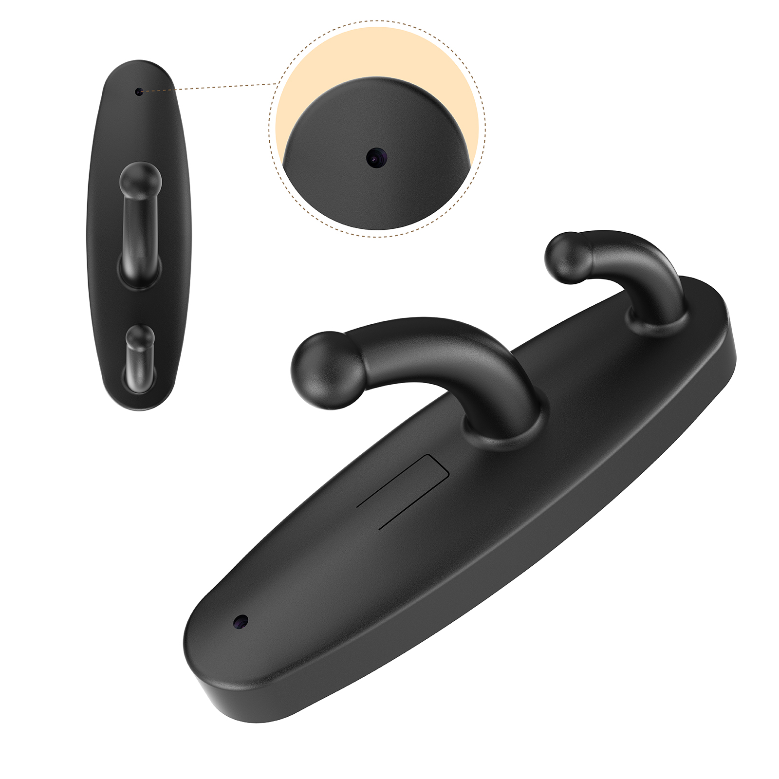 4. Czy kamera jest naprawdę niewidoczna? Tak – obudowa została zaprojektowana tak, by przypominała zwykły wieszak na ubrania, dzięki czemu urządzenie nie rzuca się w oczy. Slot na karty pamięci oraz gniazdo ładowania są ukryte na tylnej ściance która po zamocowaniu kamery na ścianie jest niewidoczna.
