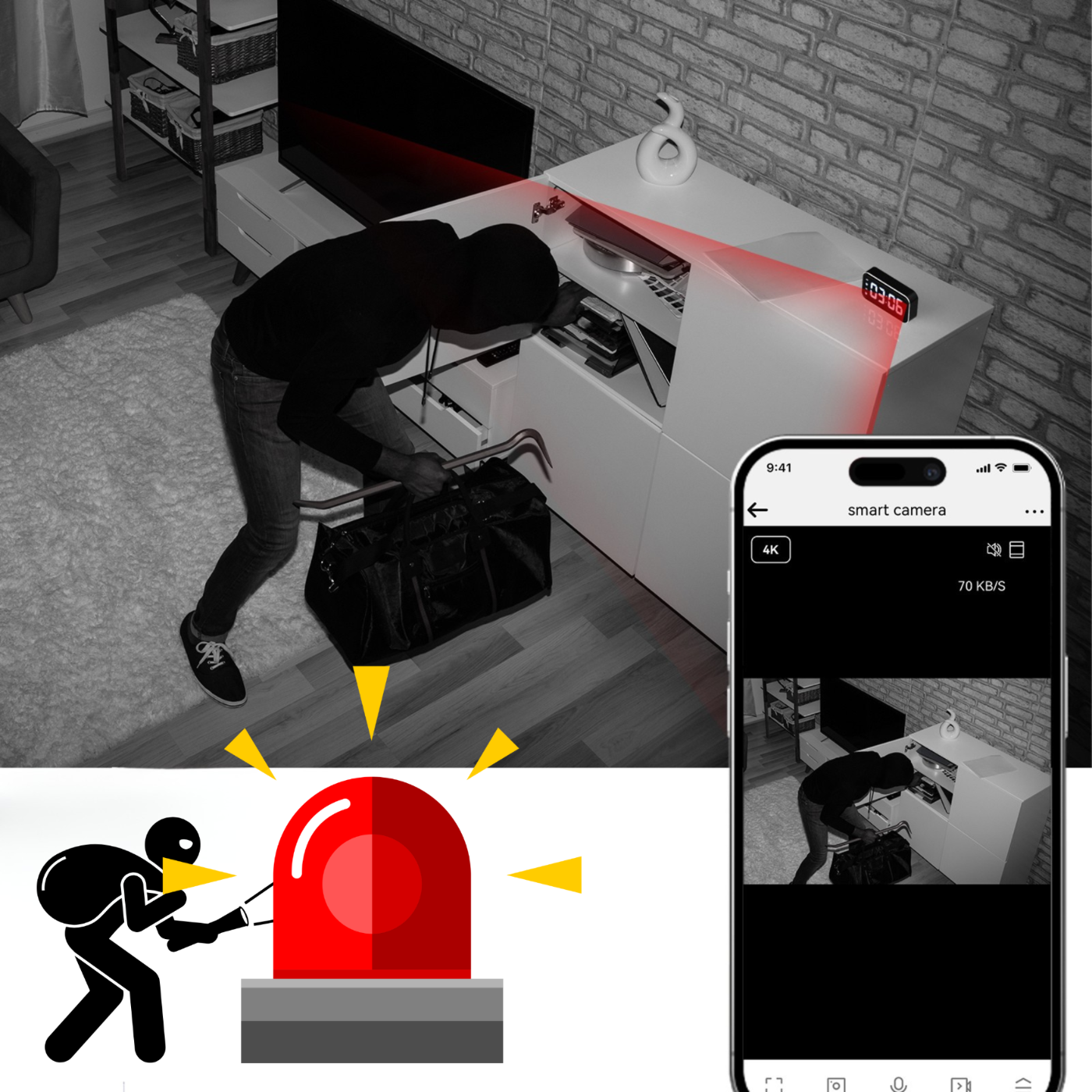 Ukryta kamera w wysokiej rozdzielczości 4K pozwala na niezauważalny monitoring pomieszczeń – idealny do domu, biura, hotelu czy pokoju dziecka.