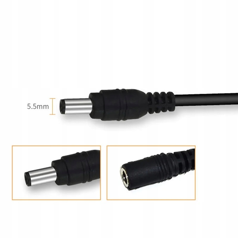 WAŻNA UWAGA: Prosimy o sprawdzenie średnicy wtyku zasilacza. Ten kabel pasuje wyłącznie do wtyczek 5.5mm x 2.1mm.